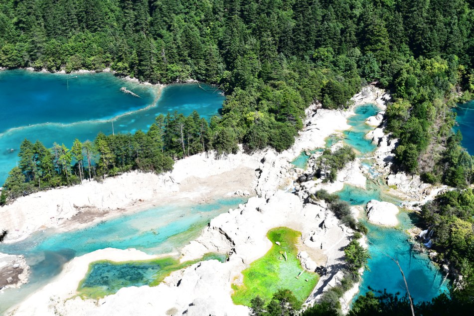 今的火花海,其修復(fù)方案得到聯(lián)合國教科文組織肯定支持,榮獲四川省“科技進步一等獎”。圖據(jù)九寨溝管理局