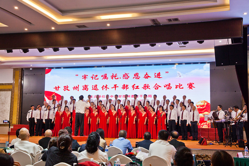 為深入學(xué)習(xí)貫徹習(xí)近平新時代中國特色社會主義思想,進(jìn)一步激發(fā)全州廣大離退休干部奮進(jìn)新征程、建功新時代的革命熱情,展現(xiàn)甘孜州離退休干部良好的精神風(fēng)貌,近日,州委老干部局在成都舉辦了“牢記囑托 感恩奮進(jìn)”甘孜州離退休干部紅歌合唱比賽及干部集中榮退儀式。360余名離退休干部和老干部工作者參加。