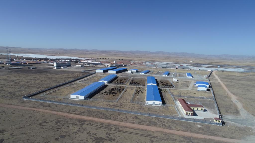 此為甘肅省甘南藏族自治州瑪曲縣馬場畜牧產(chǎn)業(yè)養(yǎng)殖基地。(無人機(jī)照片)(受訪者供圖)
