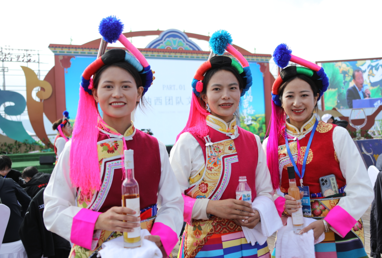 各種膚色、各種語言的人們聚集在梅里雪山腳下,以葡萄佳釀為媒,講述著德欽縣葡萄產(chǎn)業(yè)的發(fā)展故事。