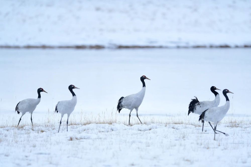 在位于青海省的三江源國(guó)家公園黃河源園區(qū)內(nèi)拍攝的黑頸鶴。張龍 攝