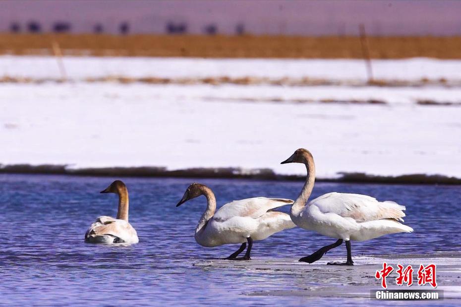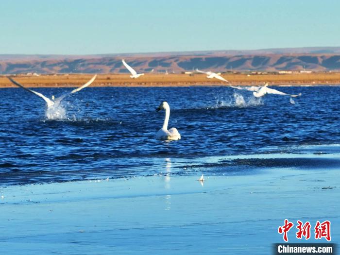 青海湖大天鵝遷徙而來 沐浴游弋宛若仙子