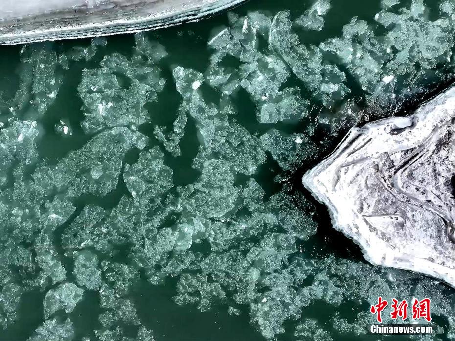小雪節(jié)氣過后,受冬季冷空氣影響,青海省海北藏族自治州祁連縣境內(nèi)的黑河上游開始出現(xiàn)流凌。攝影師通過無人機(jī)鏡頭從空中俯瞰,河道中成片的冰凌順河而下,在祁連山中蜿蜒曲折。