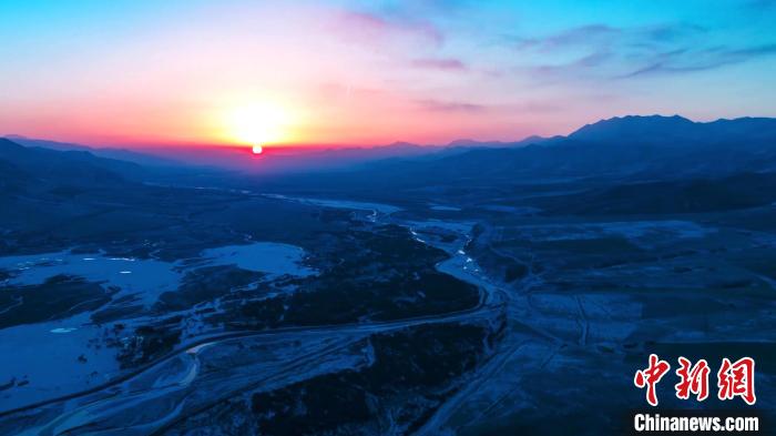 冬日高原,寒風蕭瑟。近日,攝影師在位于祁連山腹地的青海省海北藏族自治州祁連縣和門源縣境內,用鏡頭記錄下祁連山多彩壯麗的日出景觀。清晨,祁連山的雪線之上,銀白的曙光漸漸顯出緋紅,朝霞映在每一個山巒,祁連縣民眾眼中的“神山”牛心山,在朝霞的映襯下純凈透徹。門源縣境內的崗什卡雪峰在晨曦中逐漸顯露“面容”,天空也在陽光的照射下顯得多彩夢幻,連綿的祁連山在此刻盡顯磅礴氣勢。