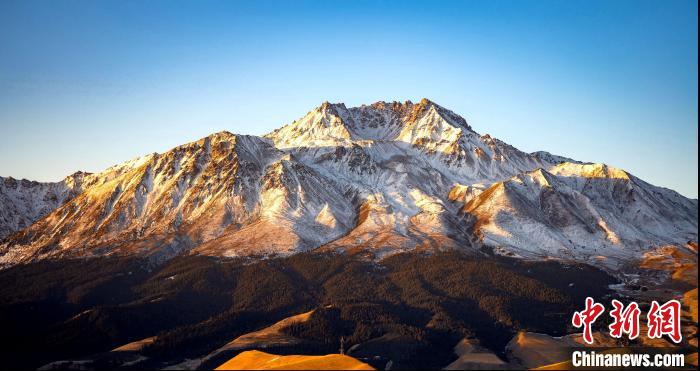圖為祁連縣境內牛心山被陽光映照的金黃。包雷 攝