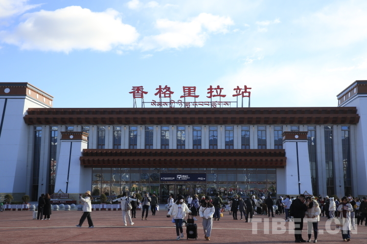 圖為香格里拉站,此站以“層巒疊嶂的雪山”為設(shè)計理念,融合了藏式建筑元素,如藏式碉樓、邊瑪墻紋飾圖樣、梯形窗等元素被應(yīng)用到建筑當(dāng)中,將民族建筑特色和現(xiàn)代化設(shè)計理念融合在一起,展現(xiàn)了新的時代風(fēng)貌。攝影:畢然