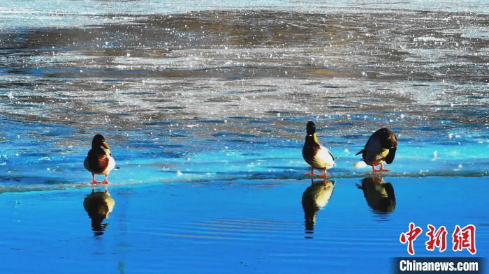 高原冬日,在位于青海湖北岸的青海省海北藏族自治州海晏縣境內(nèi),成群的赤麻鴨、綠頭鴨等鳥類現(xiàn)身青海省東大灘水庫(kù),它們時(shí)而“泡湯”洗浴,時(shí)而振翅高飛,時(shí)而覓食嬉戲,展現(xiàn)出一幅冬日和諧的美好畫面。近年來(lái),越來(lái)越多鳥類來(lái)到青海湖北岸覓食休憩,此時(shí)一半冰層一半碧波的東大灘水庫(kù)成了鳥類覓食的好去處。