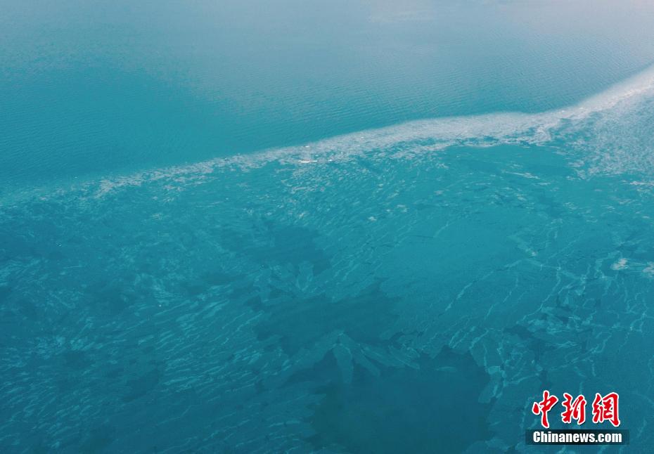 12月13日,航拍青海省海南藏族自治州共和縣境內(nèi)的青海湖漸次封凍。仲冬時(shí)節(jié),中國(guó)內(nèi)陸最大咸水湖、享有“高原藍(lán)寶石”美譽(yù)的青海湖,由岸邊向湖心漸次封凍,進(jìn)入冰封季,冰塊如破碎的水晶漂浮在湖面上,成為冬日青海湖奇特景觀。