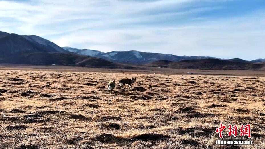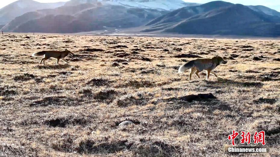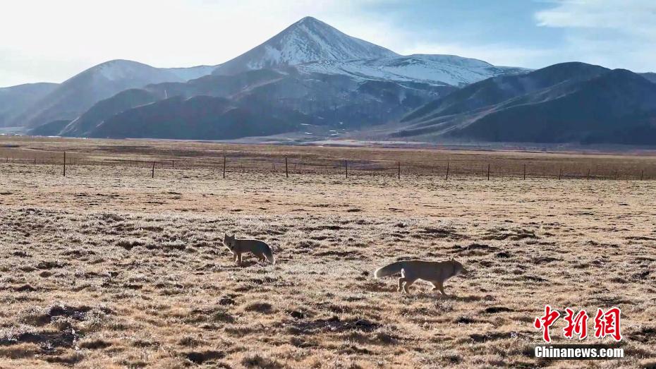 圖為兩只藏狐互動“溜達”。包雷 攝