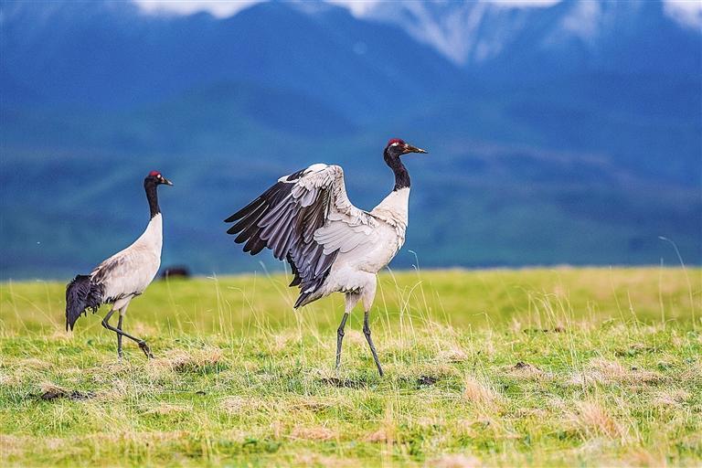 國家一級保護(hù)動物黑頸鶴在瑪曲濕地繁殖數(shù)量逐年增加。