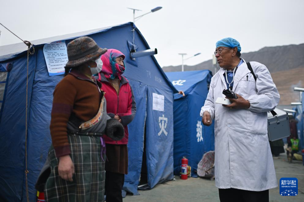 積石山6.2級地震發(fā)生后,青海省海東市循化撒拉族自治縣道幃藏族鄉(xiāng)牙木村部分房屋出現(xiàn)損毀,當(dāng)?shù)卣谝粫r間在牙木村建設(shè)安置點。因為年輕時就讀于衛(wèi)生學(xué)校、掌握基本的醫(yī)療技能,60歲的完么仁增成為安置點的義務(wù)衛(wèi)生員,為村民量血壓并普及健康知識?!拔蚁胱鲂┝λ芗暗氖聨椭l(xiāng)親們。”完么仁增說。