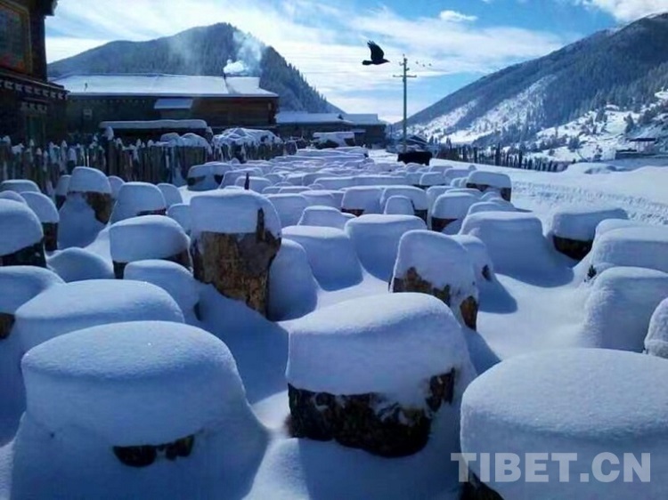 圖為雪后道孚縣民居