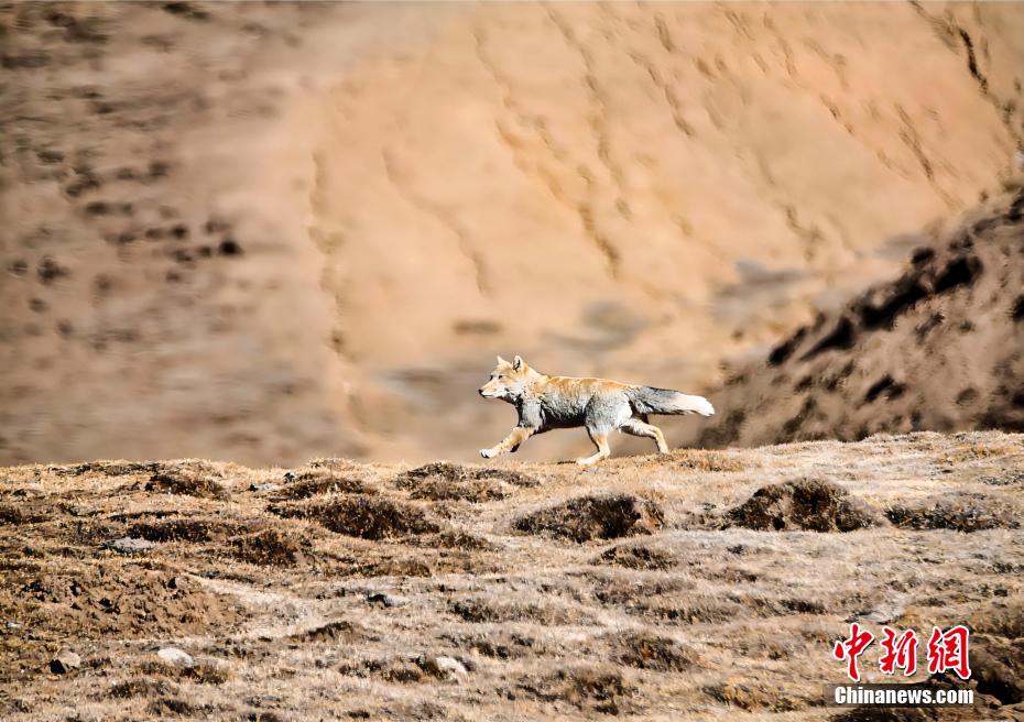藏狐在山梁上踏步獨行。張齊民 攝
