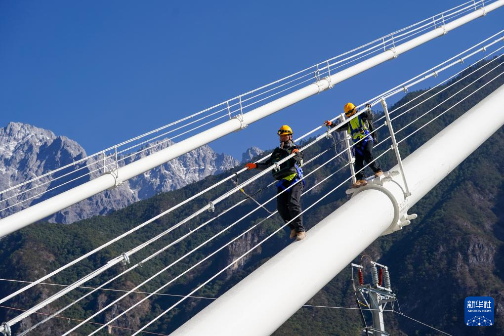云南麗江至香格里拉鐵路(麗香鐵路)即將迎來開通后的首個春運(yùn),為確保旅客平安出行,國鐵昆明局廣通工電段新尚綜合維修工區(qū)班對虎跳峽金沙江鐵路大橋進(jìn)行全面“體檢”。