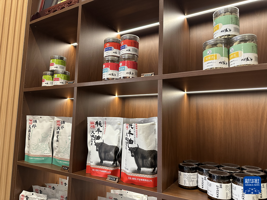 牦牛油底料還串起了縣域特色產(chǎn)業(yè)鏈。經(jīng)過(guò)創(chuàng)意研發(fā),森林里野生的羊肚菌、松茸菌、黑虎掌菌、牛肝菌都加入到“火鍋底料大軍”。春節(jié)前夕,班瑪縣特色農(nóng)副產(chǎn)品銷售直營(yíng)店內(nèi)顧客絡(luò)繹不絕,不少人專程前來(lái)購(gòu)買牦牛油、菌湯火鍋底料。