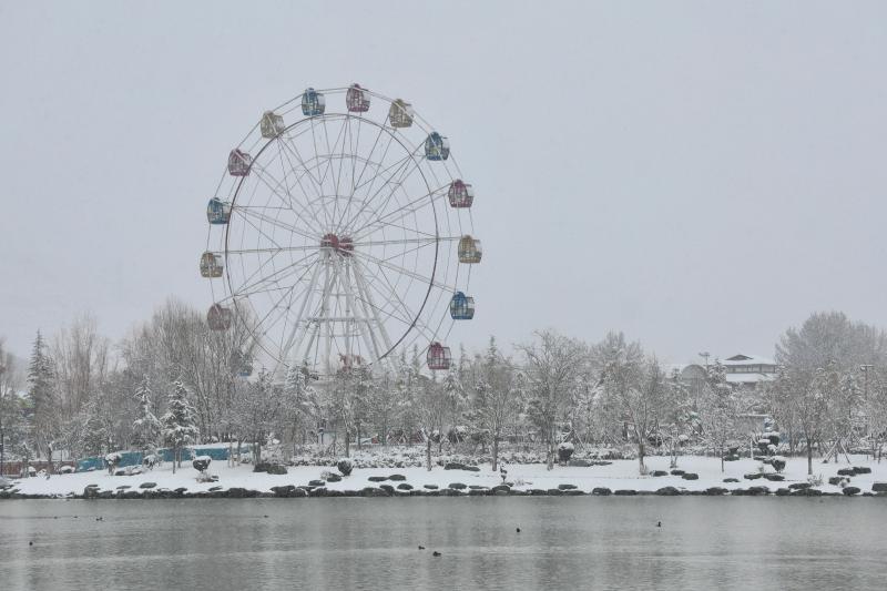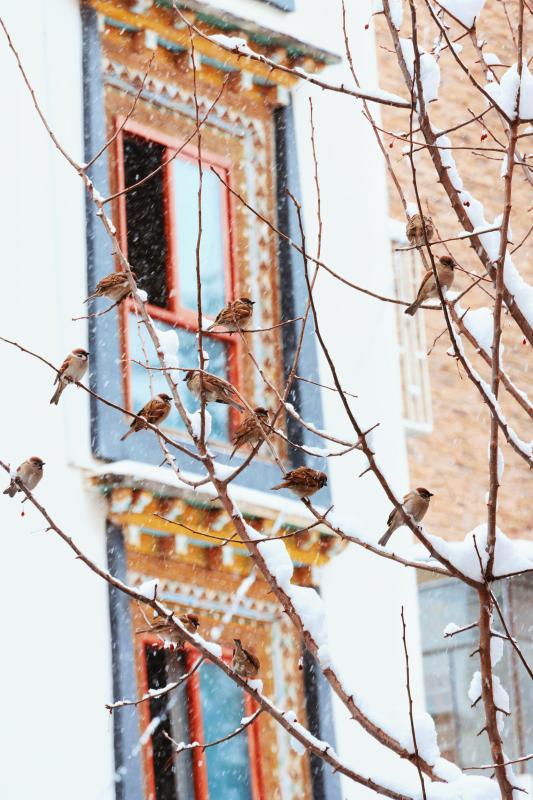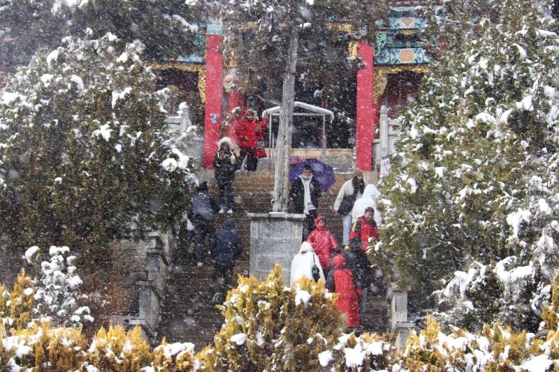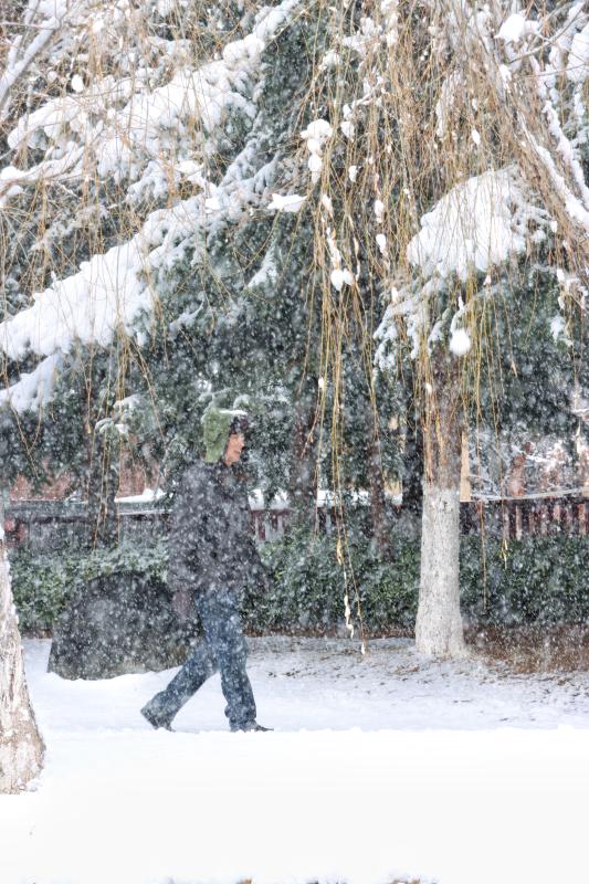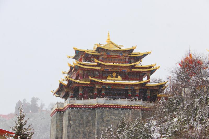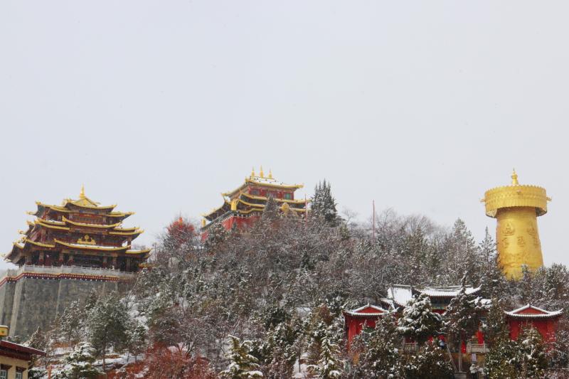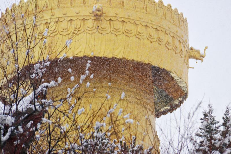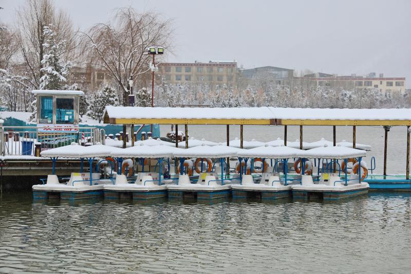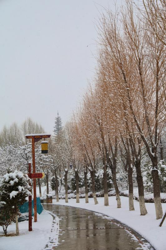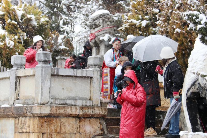 春節(jié)后第一場雪,雪花紛紛揚揚飄落,為香巴拉公園內(nèi)的各處景觀增加了別樣意趣。