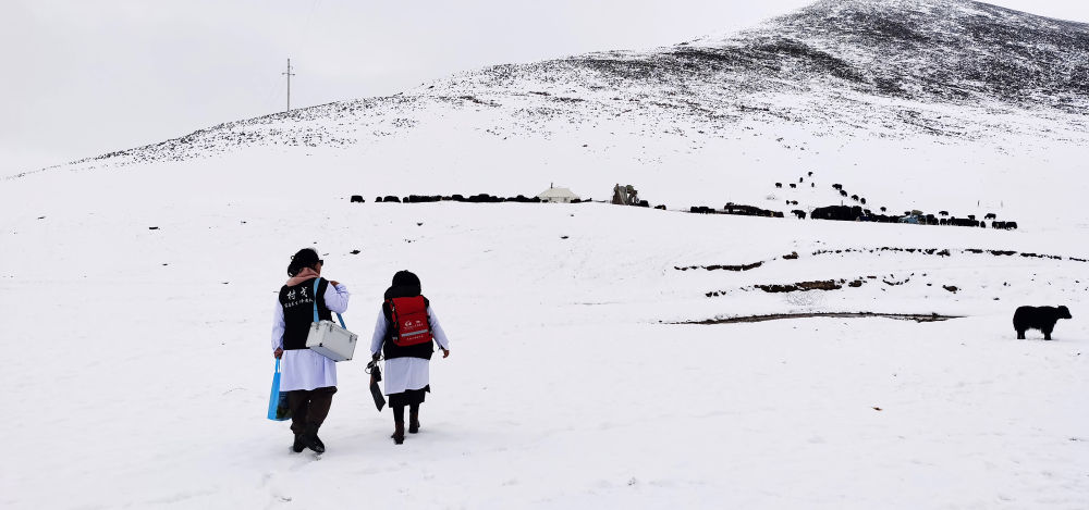 近期,四川省甘孜藏族自治州理塘縣連降大雪,路面結(jié)冰,交通不便,導(dǎo)致居住在海拔4000多米遠(yuǎn)牧區(qū)的牧民遇到看病難等問題。理塘縣村戈鄉(xiāng)中心衛(wèi)生院組織家庭醫(yī)生團(tuán)隊(duì),冒著風(fēng)雪前往遠(yuǎn)牧區(qū),為慢性病患者、孕產(chǎn)婦、老年人及小孩等送醫(yī)送藥。