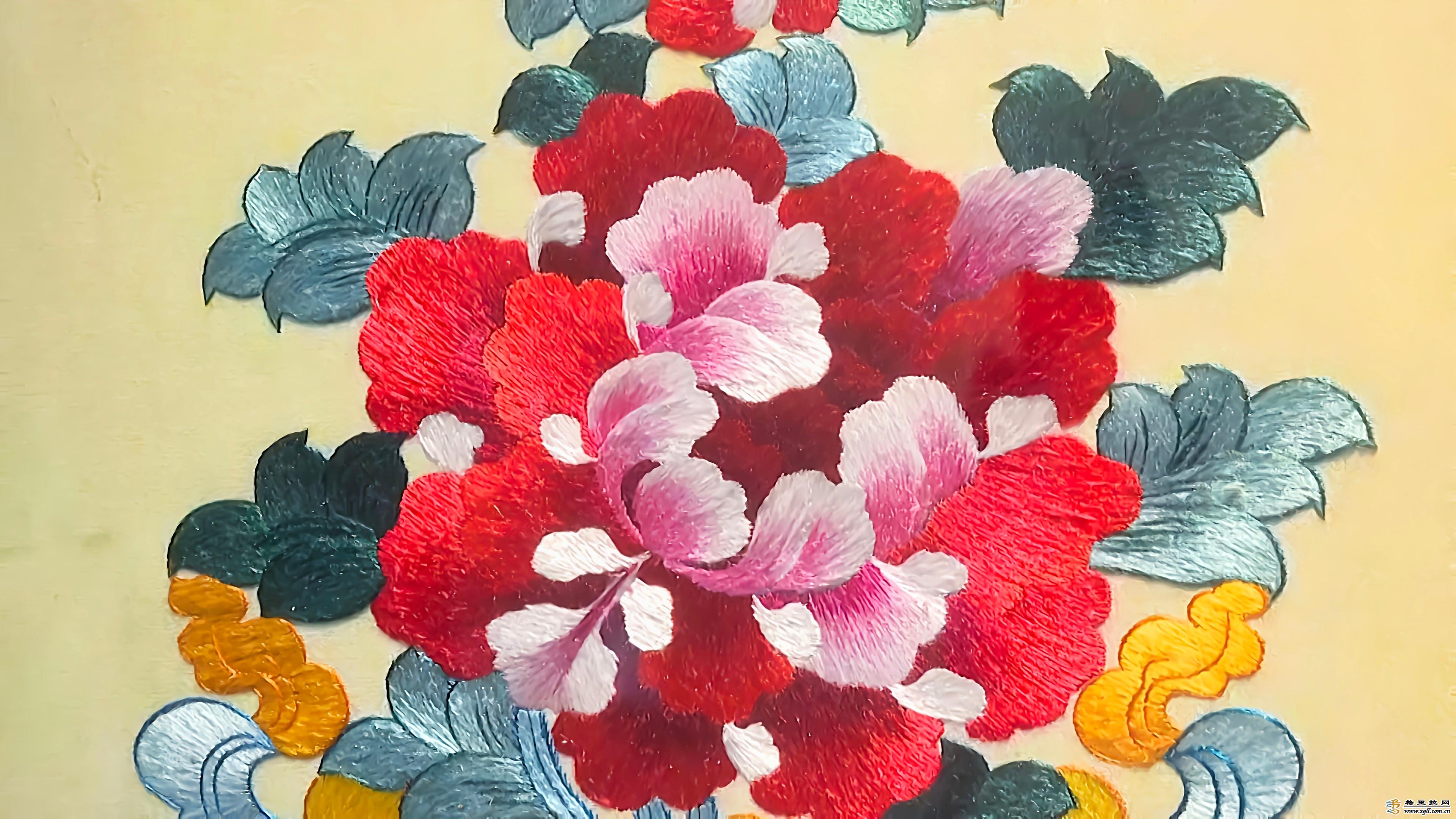 “藏繡屬于民族刺繡,它在藝術(shù)風(fēng)格上大膽采用重彩、高反差、強(qiáng)對(duì)比的手法,并以礦物顏料和植物顏料來(lái)進(jìn)行著色,給人很強(qiáng)的視覺(jué)沖擊感,且不易褪色?!蹦岈斣髡f(shuō)。