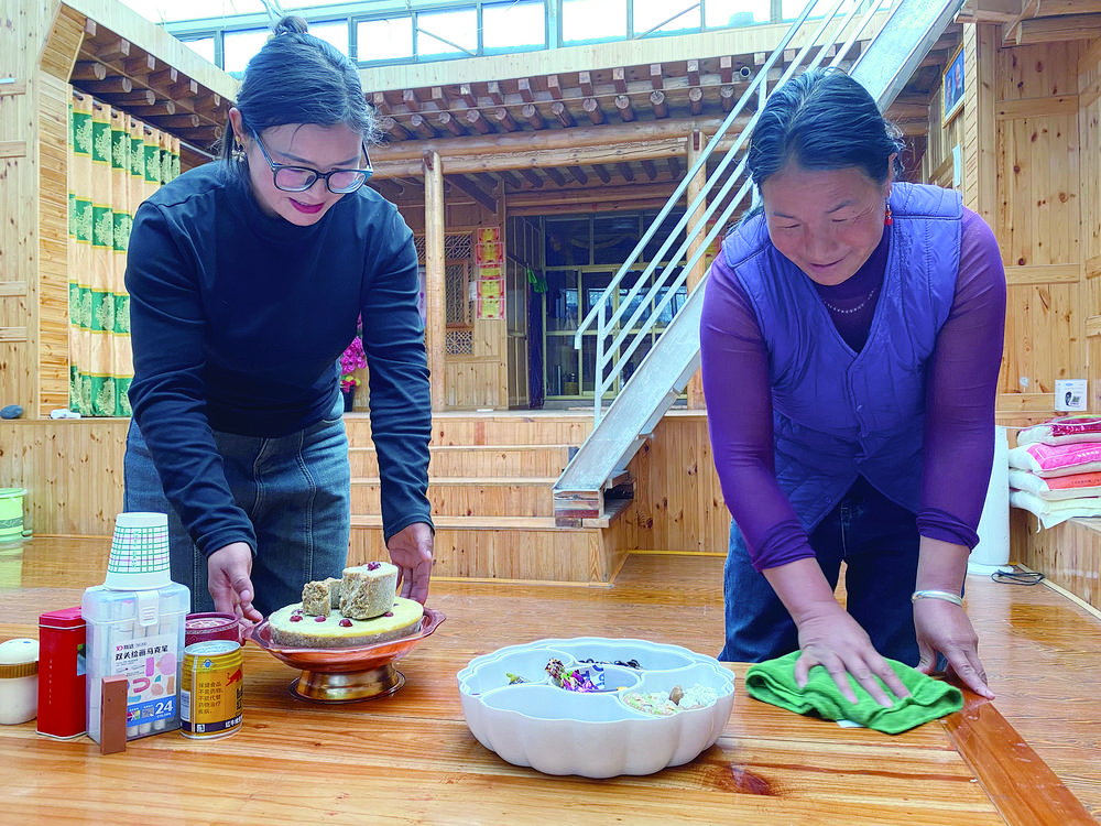 多杰卓瑪正和姑姑準(zhǔn)備品嘗藏式點心。欒雨嘉 攝