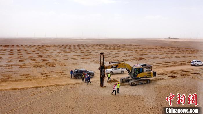 圖為航拍項(xiàng)目施工一線如“大地棋盤”的樁孔。徐景康 攝