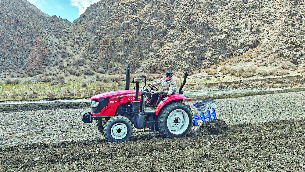 進(jìn)村時(shí)還在飄雪的結(jié)拉村,下午放晴了。跟隨駐村工作隊(duì)的腳步,我們來(lái)到結(jié)拉村的春耕現(xiàn)場(chǎng),三輛拖拉機(jī)正在有序犁地,已經(jīng)犁過(guò)的地里,大家在有序地撒種?!叭豪镎f(shuō)今天開(kāi)始春耕了,我正好有時(shí)間就過(guò)來(lái)了,我們?nèi)膫€(gè)人輪流開(kāi),今天得犁30多畝地?!闭f(shuō)著話,鬧布達(dá)杰的同伴接過(guò)了他的車(chē)?yán)^續(xù)作業(yè)。“村子里的青壯年基本都會(huì)開(kāi),誰(shuí)有時(shí)間誰(shuí)就過(guò)來(lái)。種地時(shí),大家都不會(huì)偷懶,四五天時(shí)間,村子里的1500多畝地也就種完了?!濒[布達(dá)杰說(shuō)。