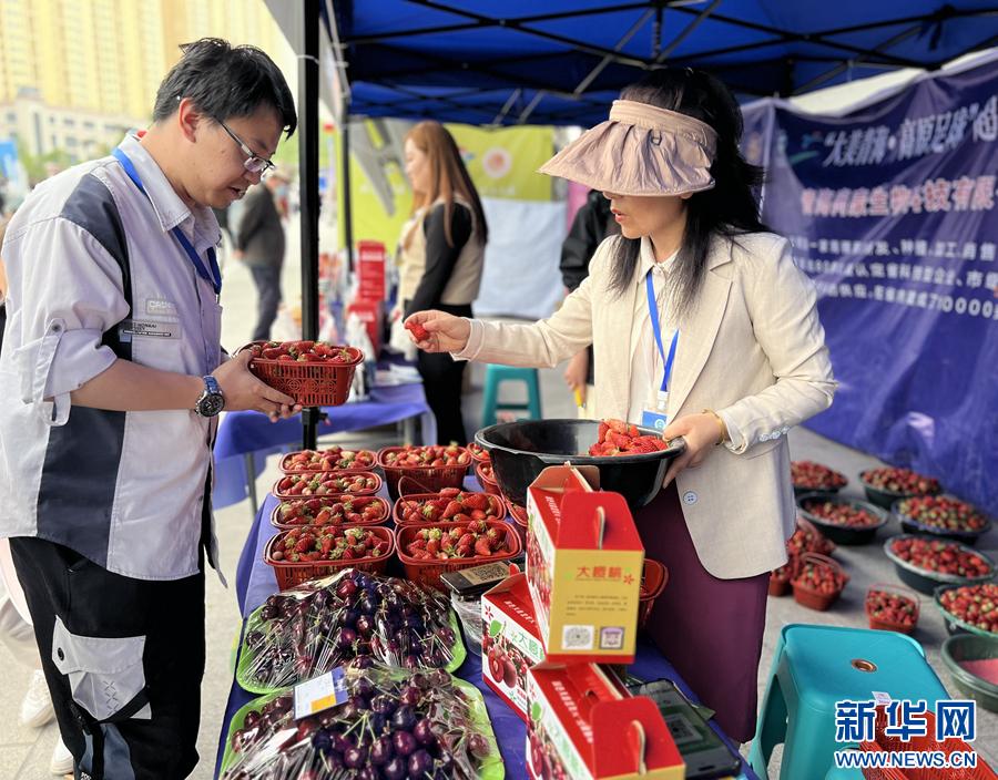 市民在賽場(chǎng)外農(nóng)畜產(chǎn)品展示區(qū)購(gòu)買農(nóng)產(chǎn)品。新華網(wǎng) 魚昊 攝