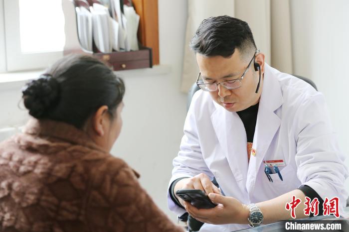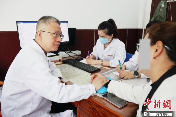 圖為上海援青醫(yī)療人才、青海省中醫(yī)院腦病科副主任遲大鵬接診。張?zhí)砀?攝