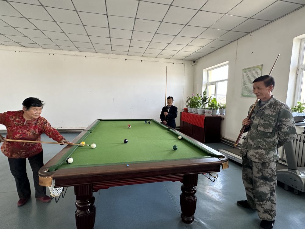 “在這兒吃住免費,飯有人做,衣服有人洗,每月還有100多元的養(yǎng)老金和零花錢?!痹诨顒邮依铮踅鹕徥治张_球桿,熟練推桿。入住敬老院后,運動成了她的生活日常。