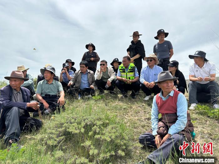 圖為尤拉才讓(前排左三))和民眾現(xiàn)場(chǎng)勘查草界。多杰才讓供圖