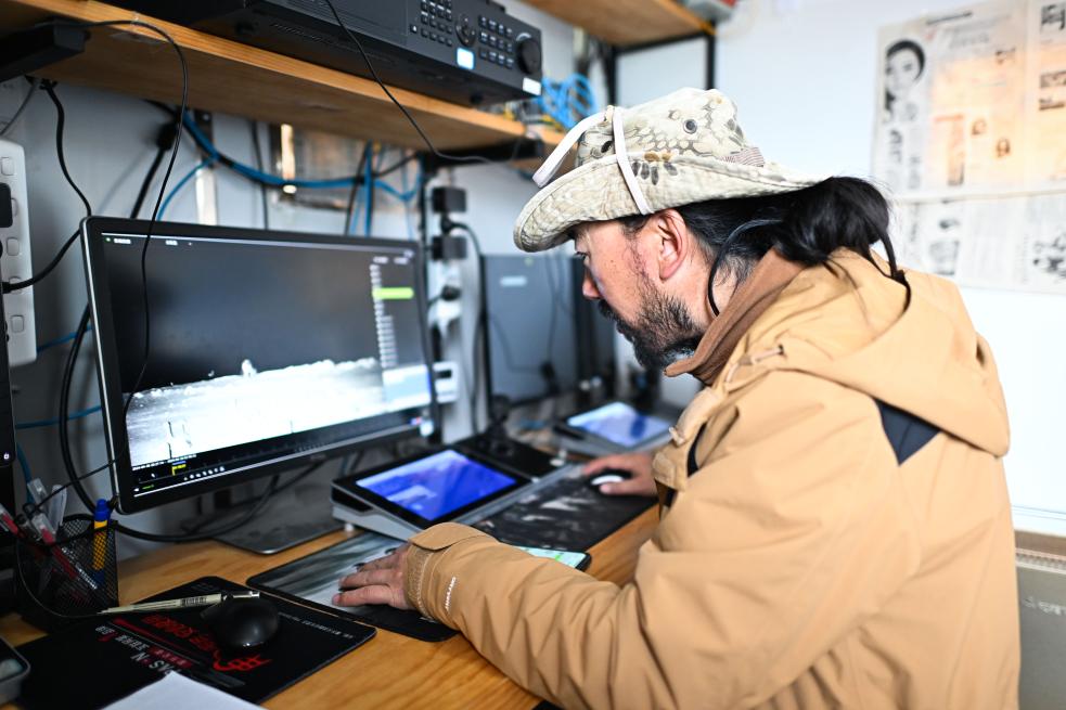 5月26日,在班德湖野生動(dòng)物觀測(cè)站,吐旦旦巴在查看紅外相機(jī)拍攝的畫(huà)面。新華社記者 張龍 攝