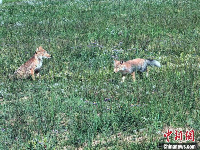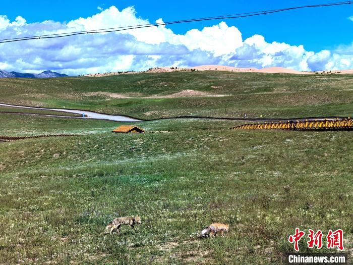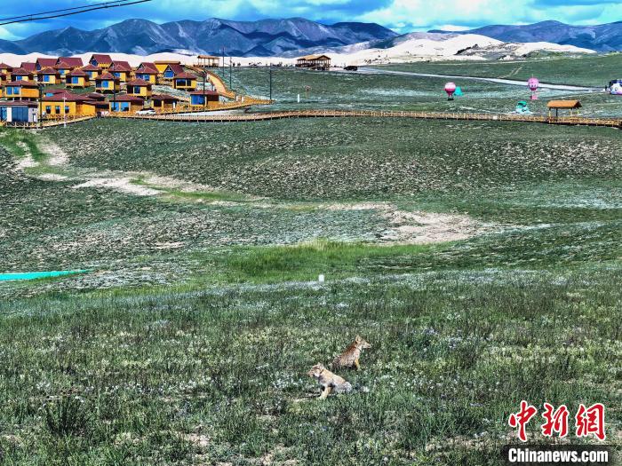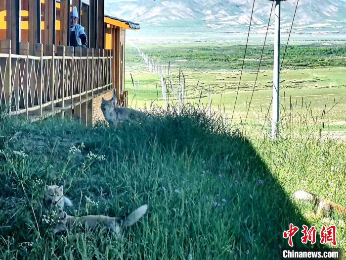 藏狐一家“入住”青海湖金沙灣 近距離與人類“互動”