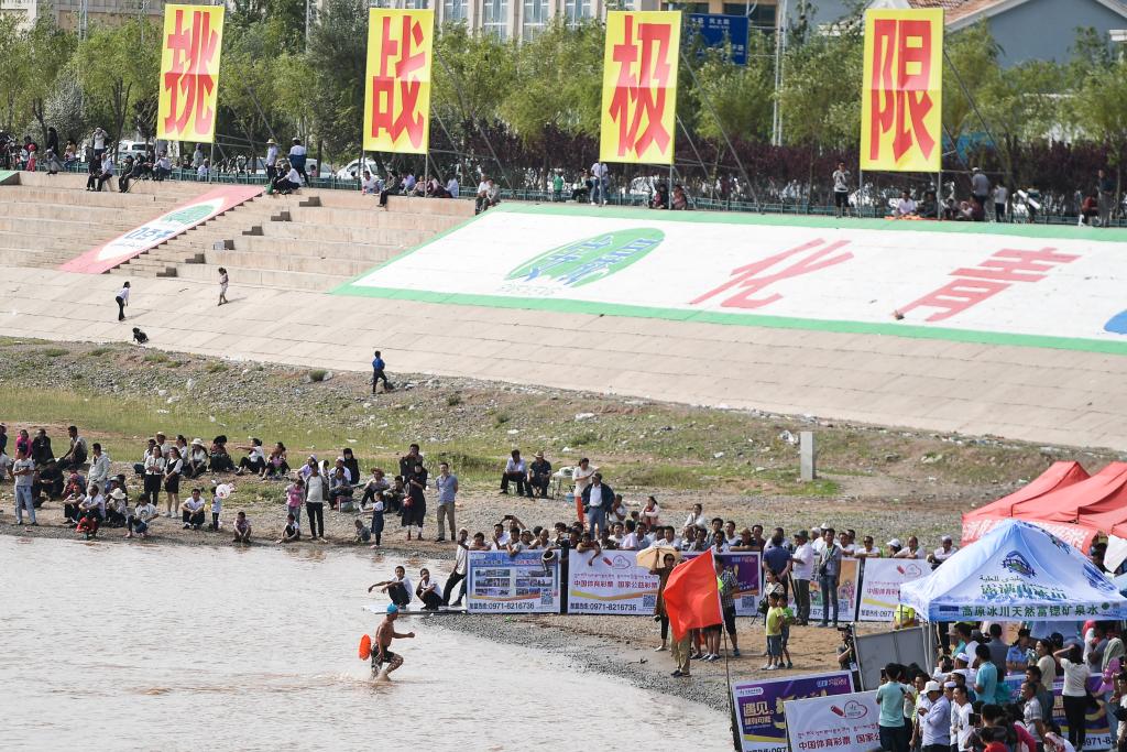 2017年8月5日,第13屆“化青杯”中國(guó)·青海國(guó)際搶渡黃河極限挑戰(zhàn)賽預(yù)賽在青海省海東市循化撒拉族自治縣舉行。新華社 吳剛 攝