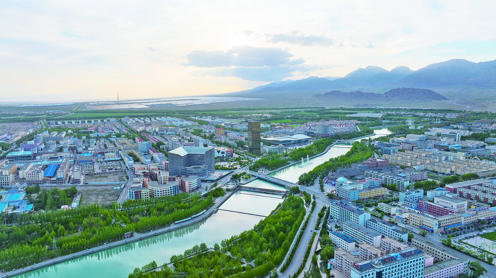 夏日,走進(jìn)德令哈市,天空碧藍(lán),巴音河水天一色,座座新建的高樓、廠房鱗次櫛比,光伏板吸光發(fā)電,熱熔鹽塔成為了城市地標(biāo),一個個百億級項(xiàng)目紛紛落戶,生產(chǎn)建設(shè)現(xiàn)場迸射著奮進(jìn)的火花。