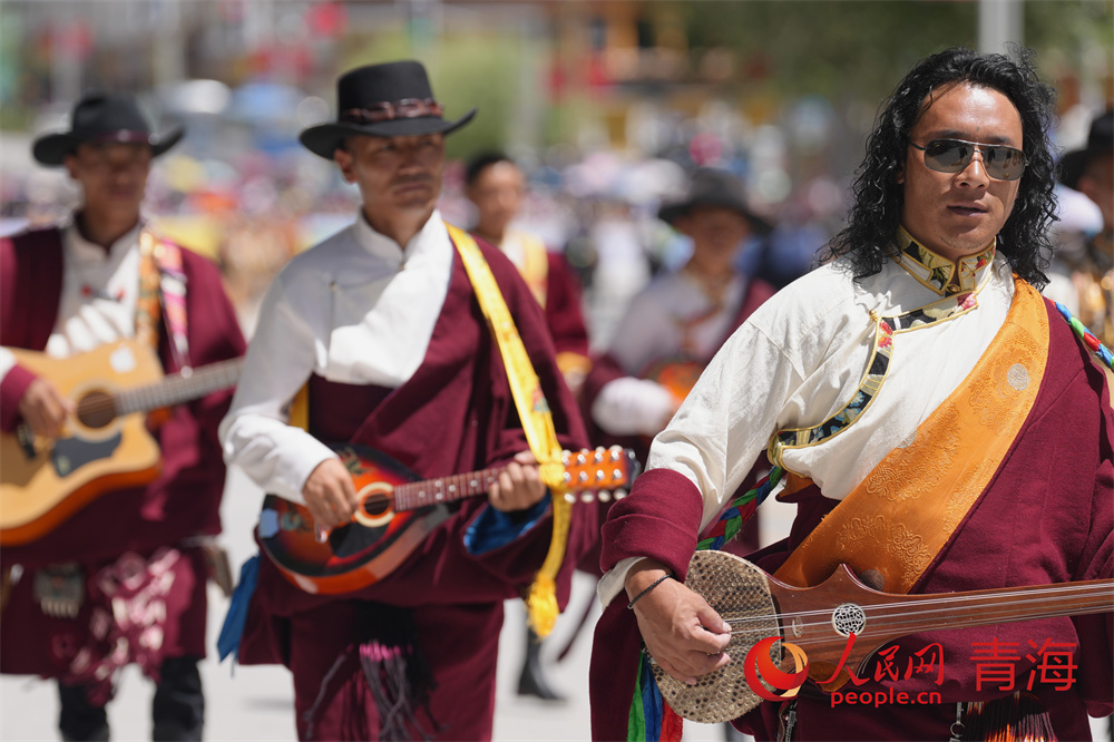 巡演現(xiàn)場(chǎng),玉樹馬術(shù)方隊(duì)、康巴漢子方隊(duì)、伊舞方隊(duì)、藏族彈唱方隊(duì)、格仲服飾方隊(duì)、游牧方隊(duì)、玉樹州非物質(zhì)文化遺產(chǎn)傳承人方隊(duì)等輪番登場(chǎng),形式多樣的非遺展演為廣大游客和當(dāng)?shù)厝罕妿?lái)了一場(chǎng)視覺(jué)盛宴。