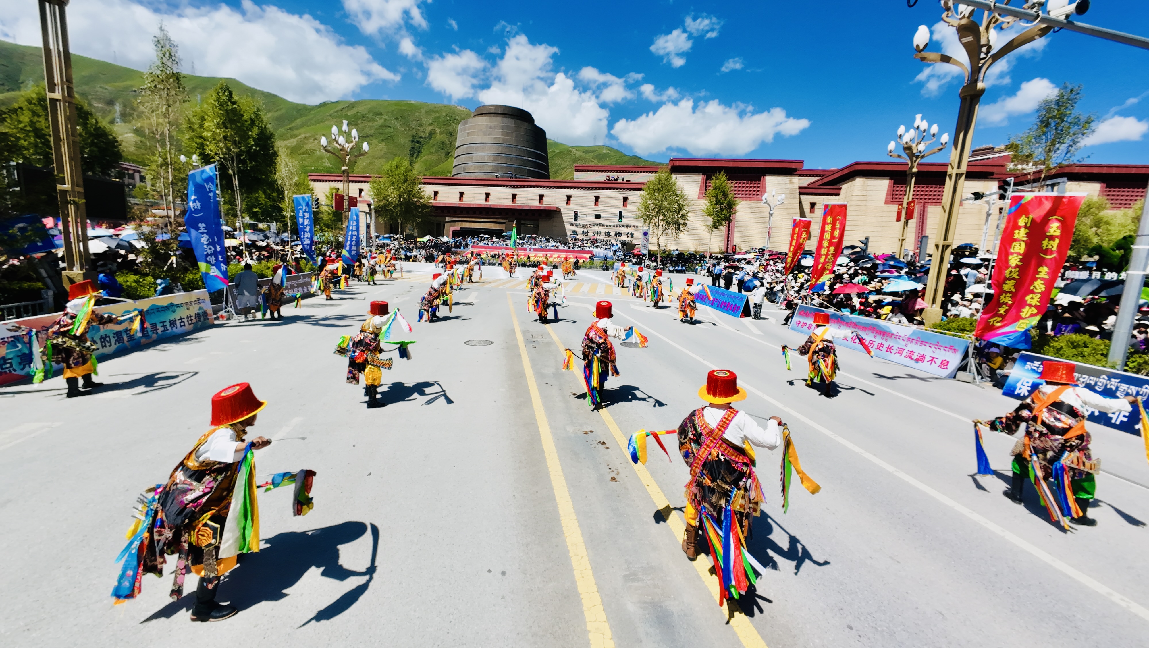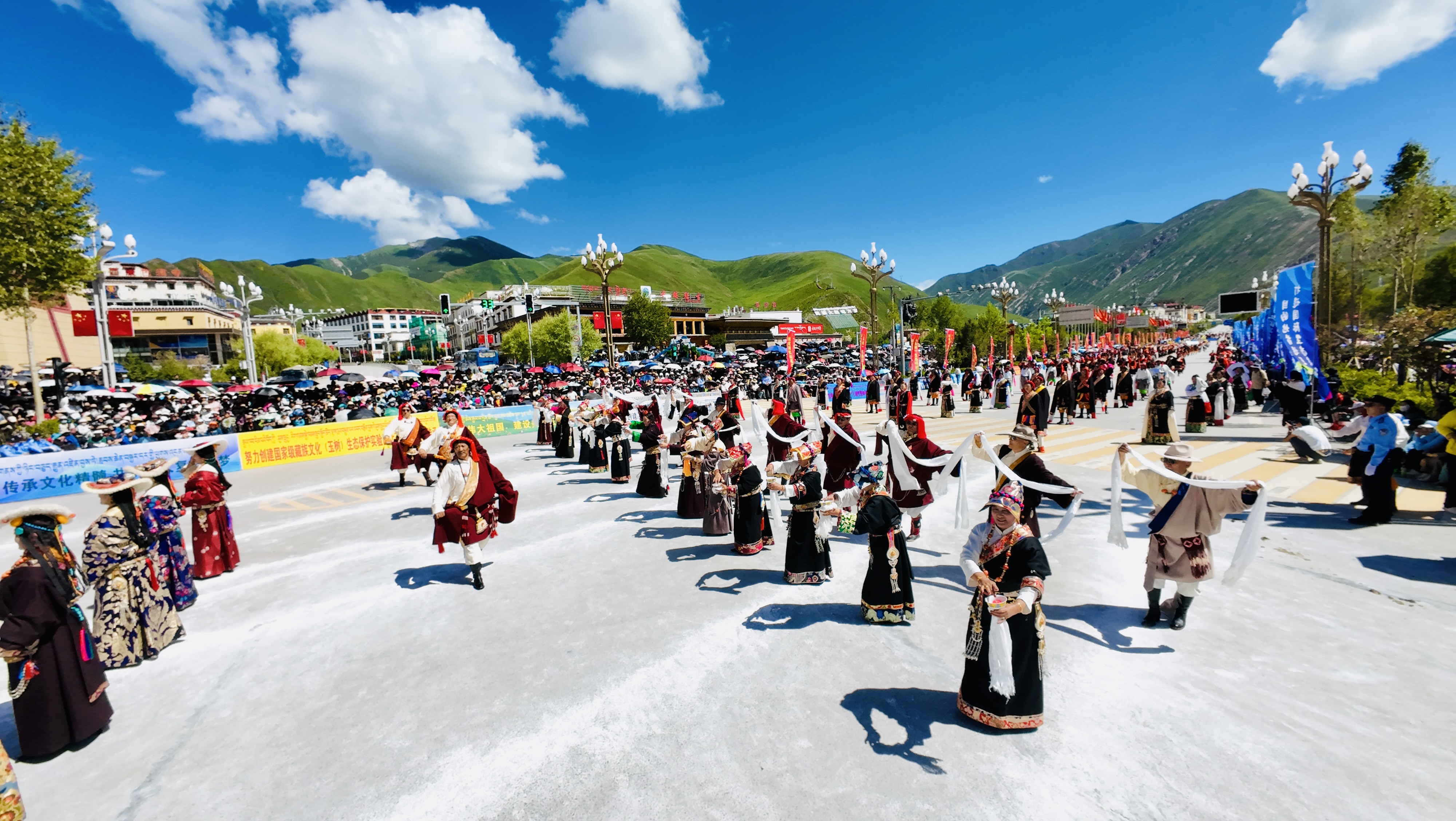 湛藍(lán)的天空映襯著高原的江河,潔白的雪山滋養(yǎng)無(wú)垠的牧場(chǎng),又是一年高山流水縈繞著牧歌的時(shí)節(jié)。7月24日,一場(chǎng)行走的非遺展在青海省玉樹藏族自治州玉樹市街頭上演?!盀t灑的康巴人”——國(guó)家級(jí)藏族文化(玉樹)生態(tài)保護(hù)實(shí)驗(yàn)區(qū)建設(shè)成果非遺巡演現(xiàn)場(chǎng),瀟灑多彩的玉樹民族民俗文化在此呈現(xiàn)。