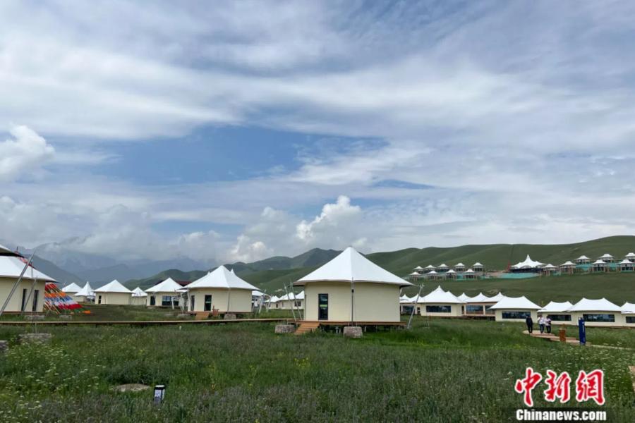 天??h抓喜秀龍鎮(zhèn)阿尼嘎卓帳篷營地。中新網(wǎng) 張鈺惠 攝