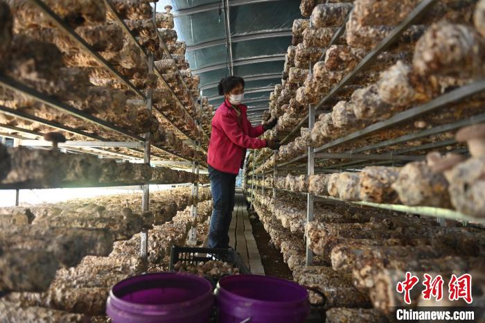 7月27日,在甘肅省武威市天祝藏族自治縣國家農(nóng)村產(chǎn)業(yè)融合發(fā)展示范園高原食用菌基地內(nèi),工作人員姚瑞萍采摘食用菌。姚瑞萍是該基地附近村民,目前在該基地采摘食用菌每天有140元人民幣收入,既能夠就近有收入又可以照顧家庭。據(jù)了解,當(dāng)?shù)睾0卧?040-4874m之間,水源為祁連山冰雪融水,農(nóng)業(yè)生產(chǎn)病原菌少,病蟲害少,是香菇、平菇等中低溫型食用菌生長的理想之地。近年來,當(dāng)?shù)匾M(jìn)龍頭企業(yè)建設(shè)了多個食用菌產(chǎn)業(yè)園,成立了食用菌研究院,被譽名“中國高原食用菌之鄉(xiāng)”。中新社記者 李亞龍 攝