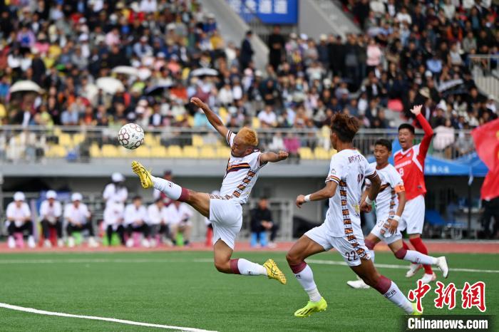 8月2日,甘肅甘南州隊球員在比賽中。中新社記者 九美旦增 攝