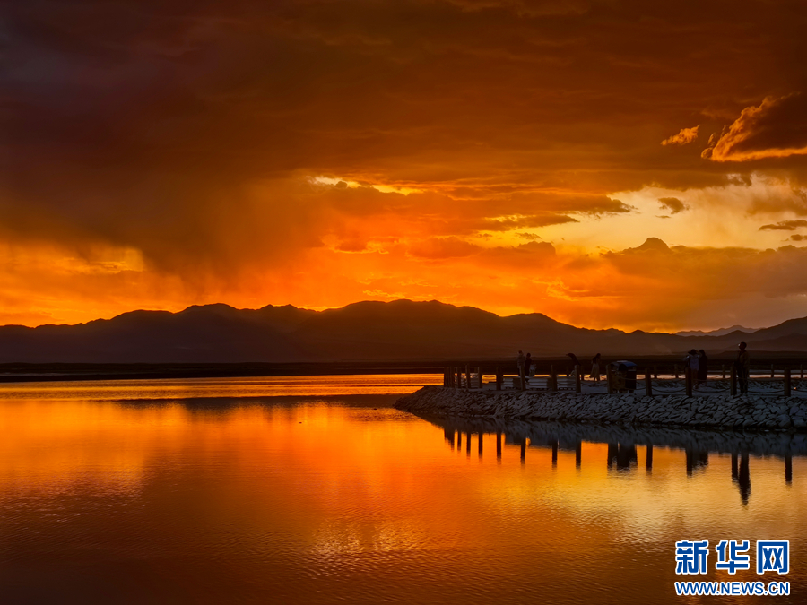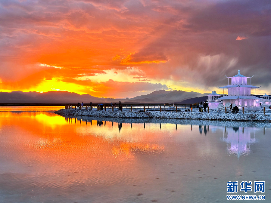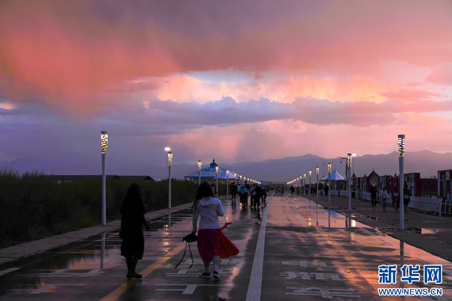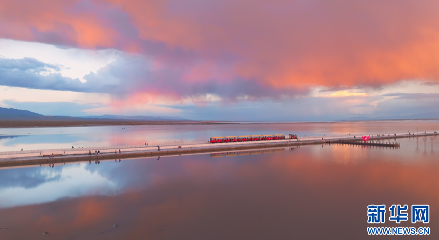 茶卡鹽湖景區(qū)的晚霞。新華網(wǎng) 尤莉靈 攝