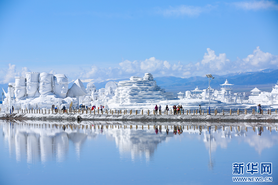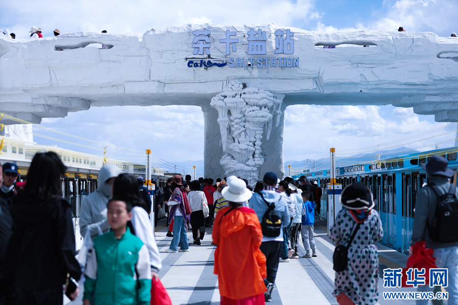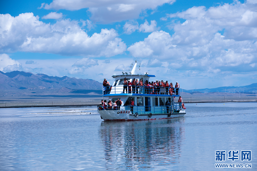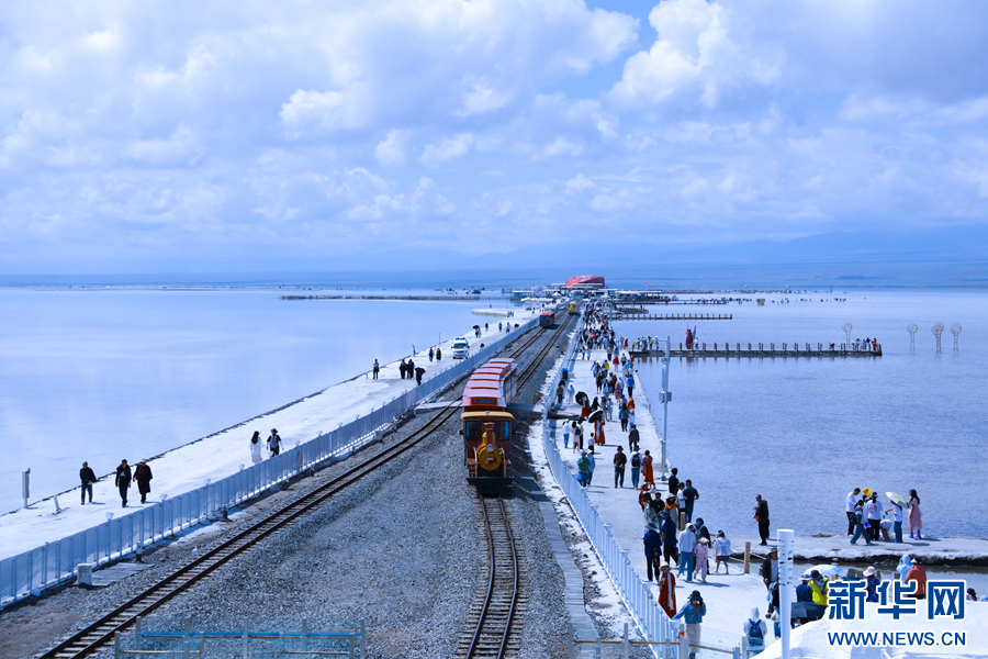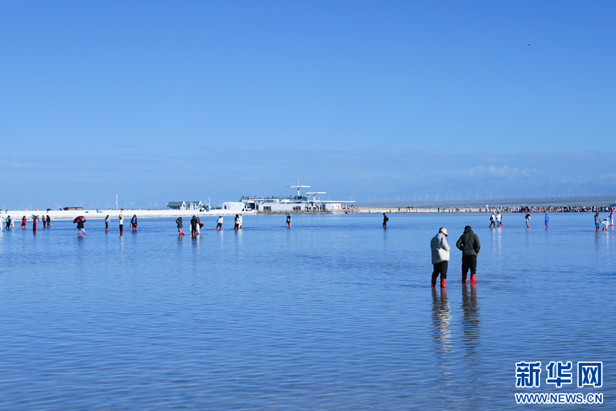 游客在茶卡鹽湖景區(qū)游玩。新華網(wǎng) 王生榮 攝