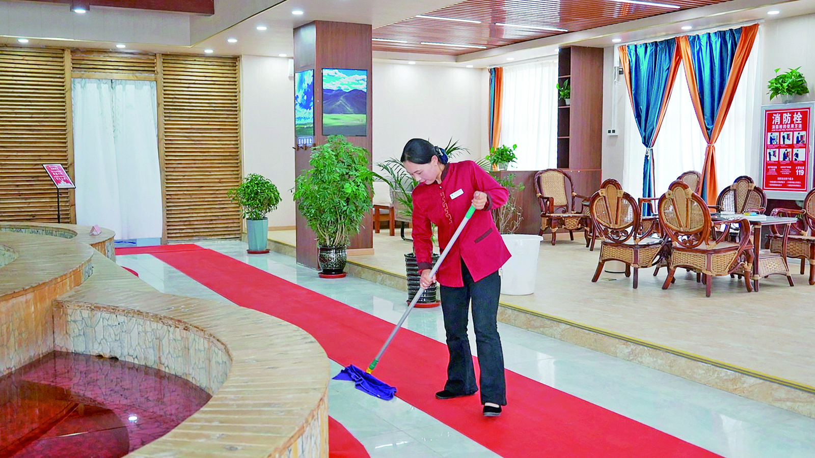 今年,通過改造后的溫泉酒店擁有客房19間,還增加了餐飲項目,帶動村里畜產(chǎn)品銷售,同時帶動村民增收。“現(xiàn)在客房還是太少,滿足不了旅行社、旅游團的需求,為此,我們引導(dǎo)村民發(fā)展牧家樂,游客可以自由選擇,體驗藏族風(fēng)情。”昂秀拉夫旦說。