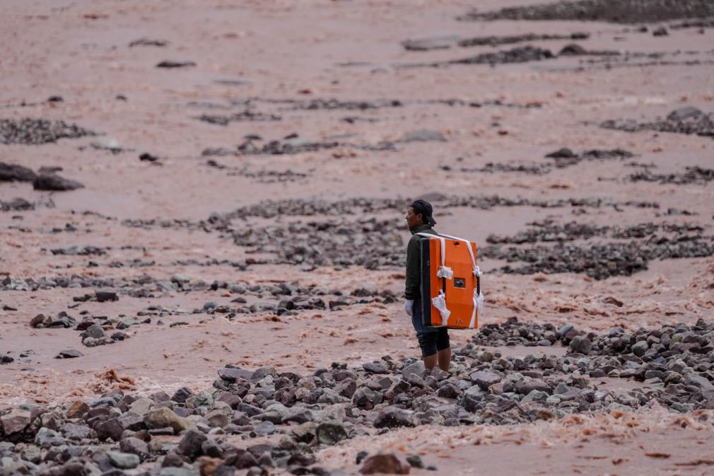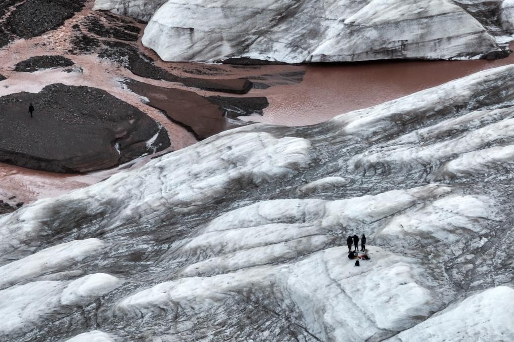 7月25日,科考隊(duì)員在探測(cè)冬克瑪?shù)妆ǎo(wú)人機(jī)照片)。新華社記者 伍志尊 攝