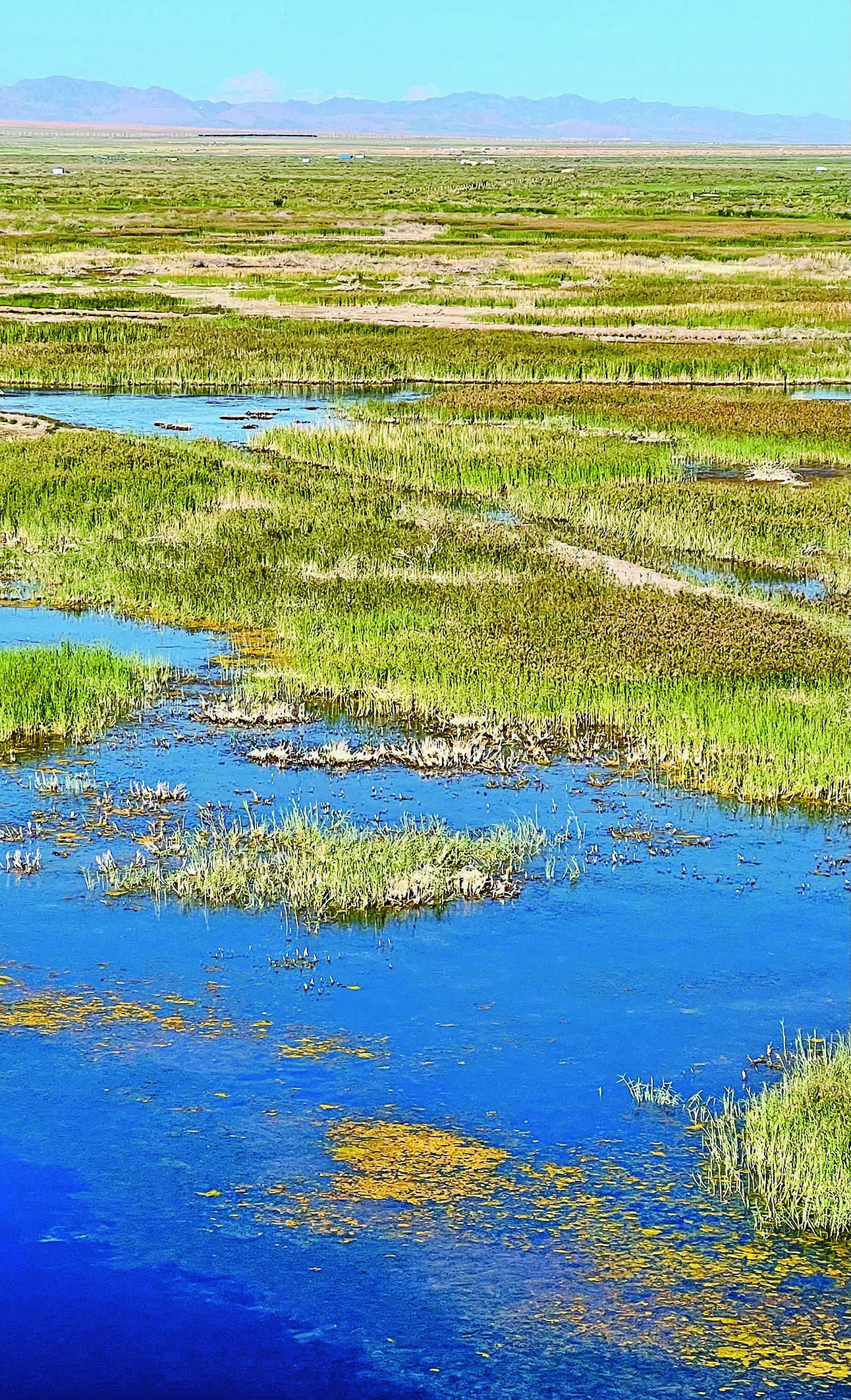 行走德令哈,隨處可見的濕地之美,不僅在于它那如詩(shī)如畫的自然風(fēng)光,更在于它所蘊(yùn)含的那份寧?kù)o、和諧與生命的力量。站在濕地邊,空氣中彌漫著泥土與草木的清新氣息,在碧波蕩漾的湖面與藍(lán)天白云交相輝映下,碧綠的蘆葦隨風(fēng)搖曳,仿佛是大自然最溫柔的筆觸。