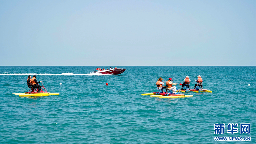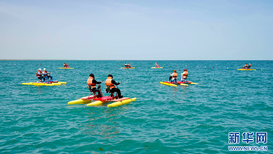 游客在青海湖青海湖景區(qū)體驗(yàn)游樂(lè)項(xiàng)目。新華網(wǎng) 宋忠勇 攝