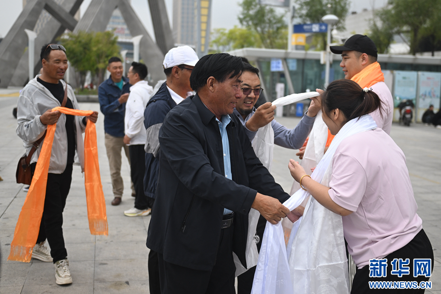 學生家長為翔宇中學老師獻哈達。新華社記者 張龍 攝