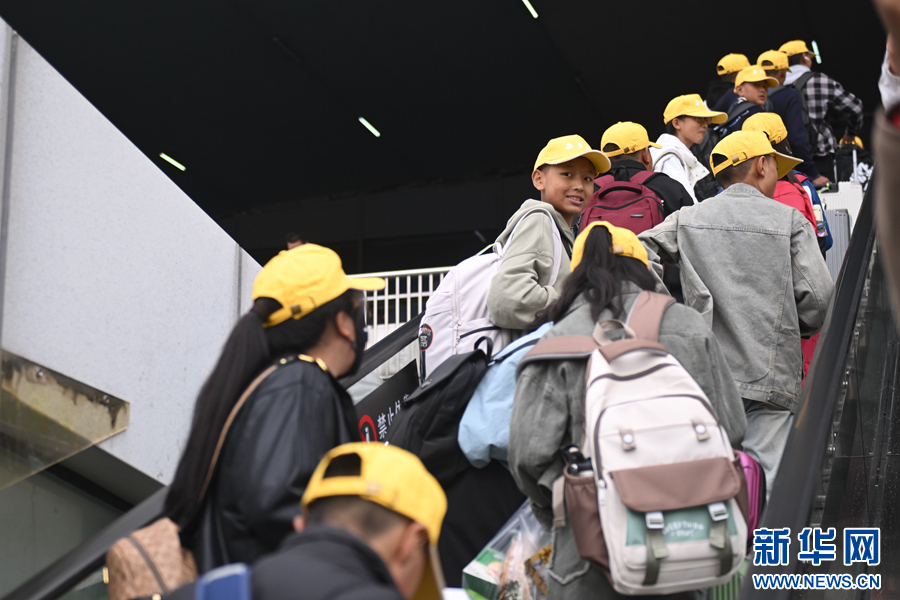 學生們在火車站集合,整裝待發(fā)。新華社記者 張龍 攝