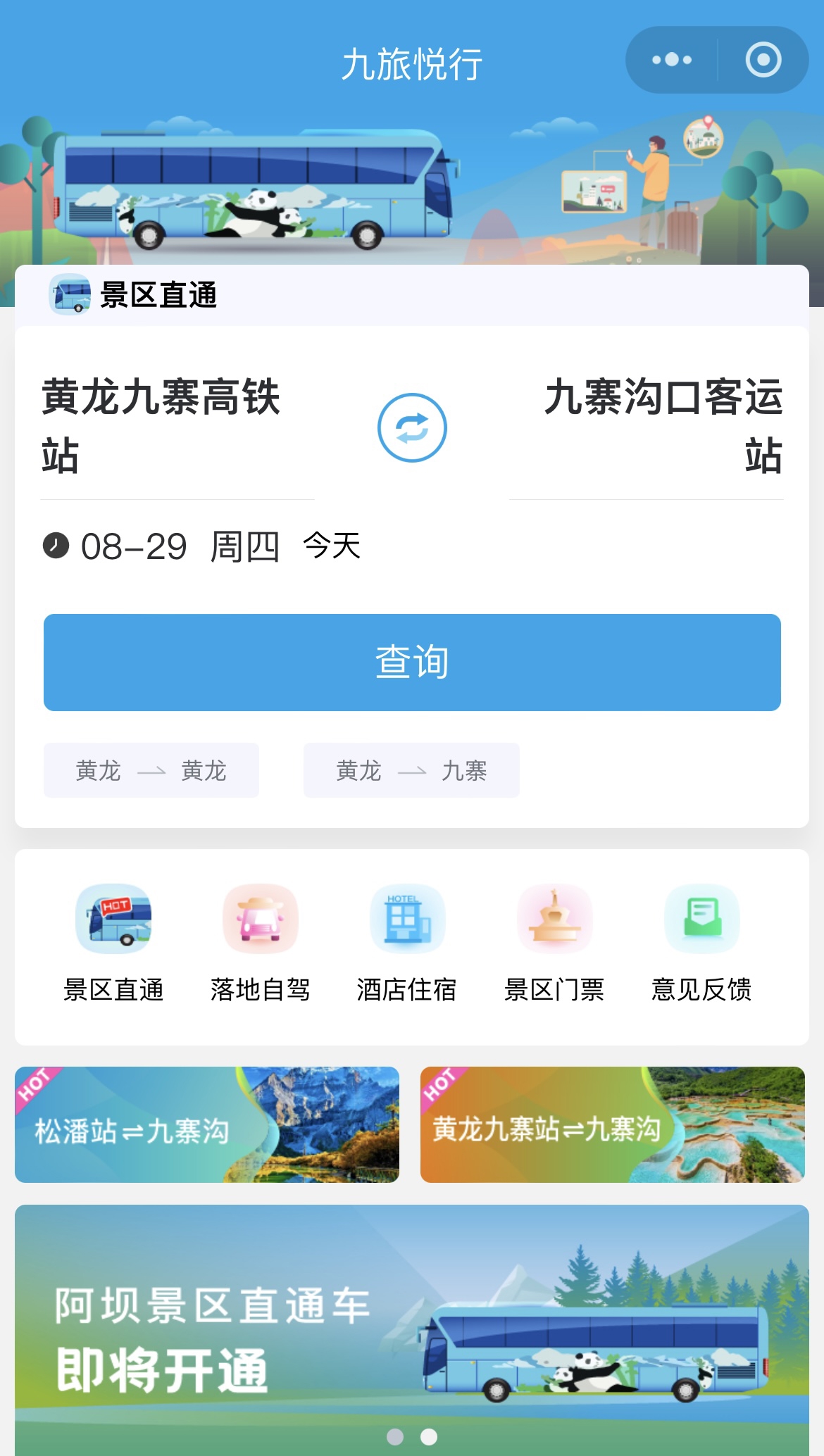 黃龍九寨站外景區(qū)直通車已就緒。