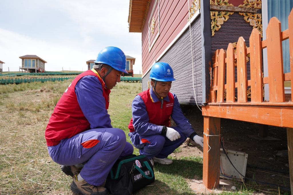 9月2日,“石榴籽”電力流動驛站工作人員檢查果洛藏貢麻村崗日梅朵旅游度假村用電情況。(旺瑪多杰 攝)