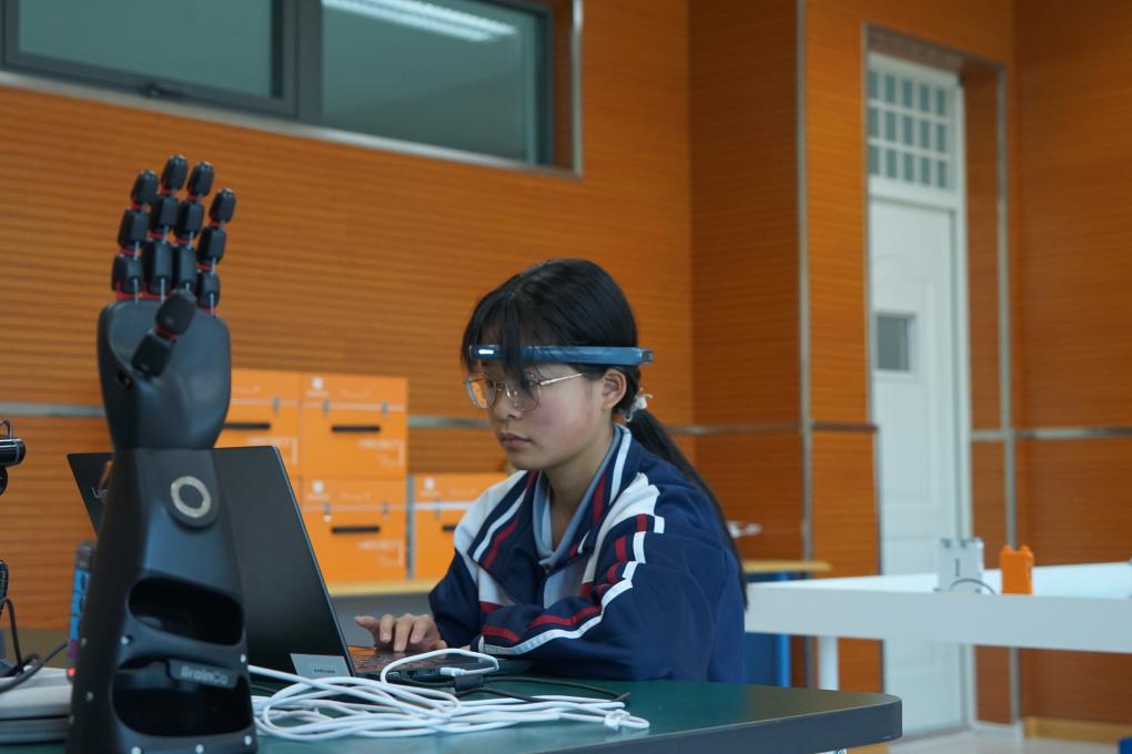 果洛西寧民族中學學生在人工智能實驗室開展社團活動。新華社記者 張子琪 攝