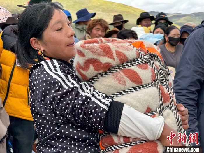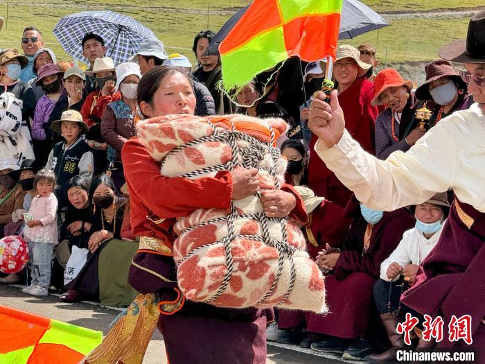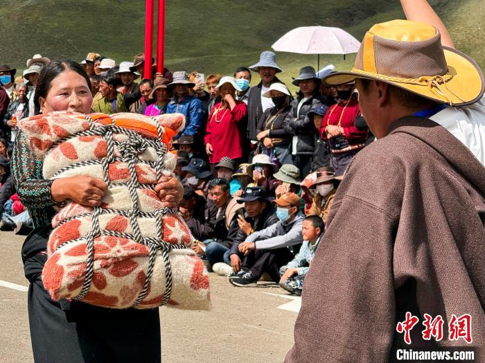 9月11日,在青海省果洛藏族自治州甘德縣2024年“農(nóng)牧民豐收節(jié)”期間,當(dāng)?shù)嘏e辦民族傳統(tǒng)體育賽事——抱沙袋比賽,民眾熱情參與,共慶豐收。比賽中,選手需要抱起立方體的沙袋(男子:140公斤;女子:75公斤),從起點(diǎn)走向50米外的終點(diǎn)處,若能從終點(diǎn)折返,則成績更佳,最終,走過距離最長的選手獲勝。抱沙袋是藏族傳統(tǒng)體育項(xiàng)目,藏族民眾在生產(chǎn)生活中需扛起重物放到牛鞍、馬鞍上,漸漸演變出這項(xiàng)運(yùn)動(dòng)。
